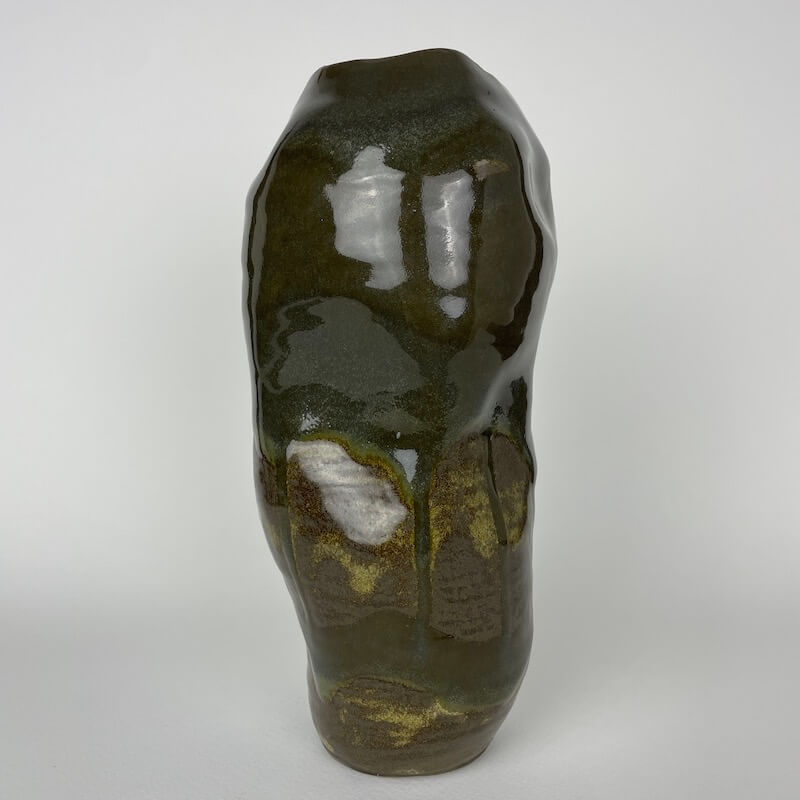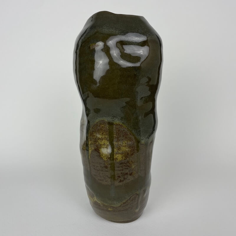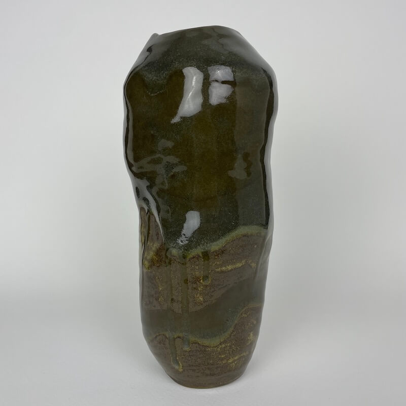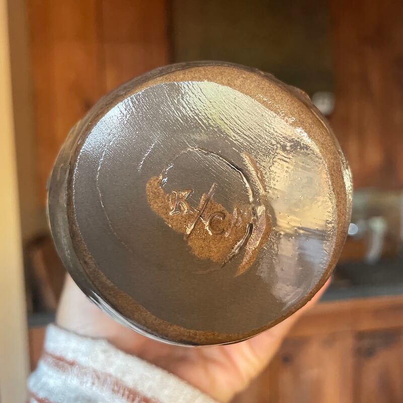 Handmade coil ceramic vessel. Is properly sealed on the inside, will hold water, crack on bottom.